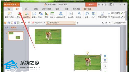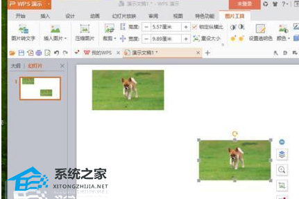 2、在打开的Wps文稿窗口,插入图片,并将图片复制一份,移动到其他区域。如图所示。