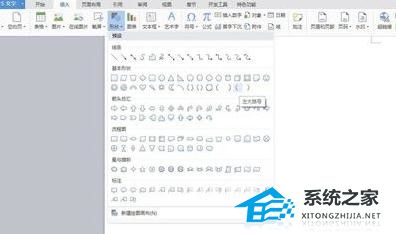 单击WPS文档上方菜单“插入”→“形状”→“基本形状”→单击“双括号”图形。