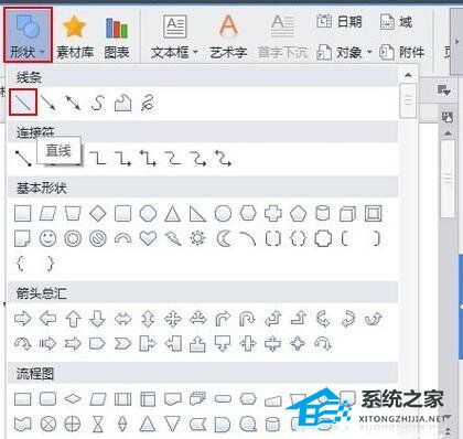 输入文本,然后单击菜单栏-插入-形状选择一条直线。