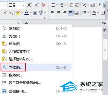 这样,上面的破折号就设置好了。重新输入一行文本,选择,右键单击,然后输入字体。