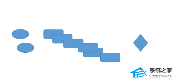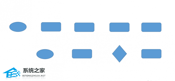 3、在空白文档上依次绘制椭圆、圆角矩形和菱形,并根据需要复制图形的数量。假设我们使用2个椭圆,6个矩形和1个菱形。