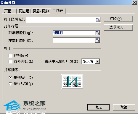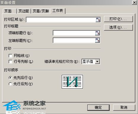 第二步,执行“文件→页面设置”,单击“工作表”标签。
