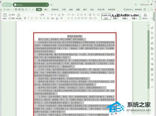2、 第二步,接下来,请大家将这一篇文档种想设置行距的部分全部选中。