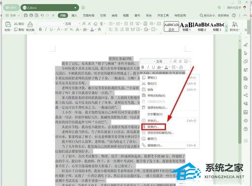 3、 第三步,请右击选中的部分,然后选择屏幕中的“段落”这一项。