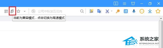 2、此时我们看向搜狗浏览器地址栏右侧的位置,在这里可以看到一个“e”形状的图标,这证明此时我们正在使用兼容模式浏览当前网页,使用鼠标点击一下这个图标。