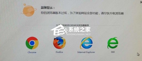 1、首先如下图所示,当我们使用搜狗浏览器的兼容模式访问某些网页的时候,可能会看到如下图所示的浏览器版本过低的提示。