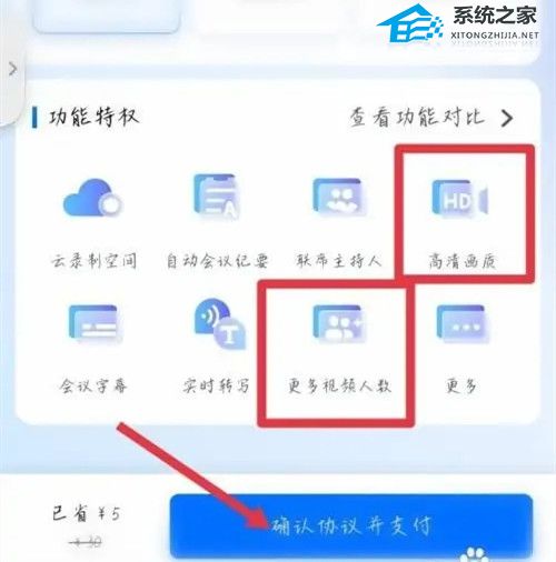 3、在升级界面里可以看到,通过升级就可以提升视频数量上限,点击确认协议并支付即可升级。