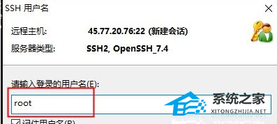 5、输入可以连接服务器的合法用户名,勾选记住用户名。