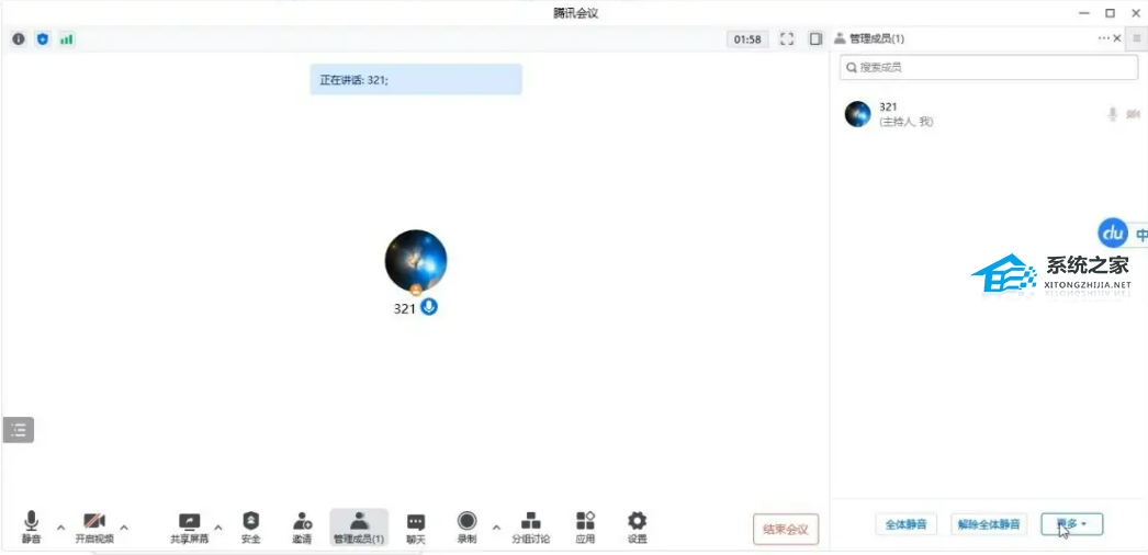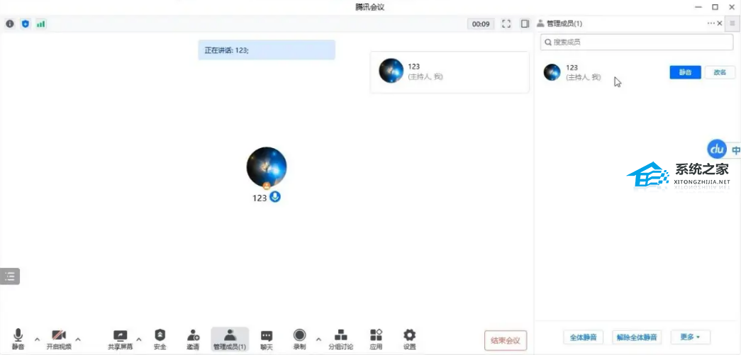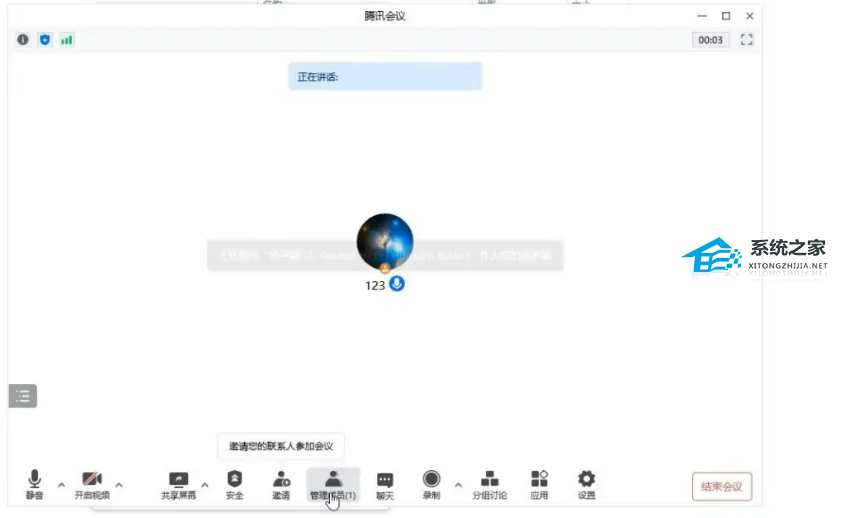 1、在会议窗口中点击下方菜单栏中的管理成员选项。