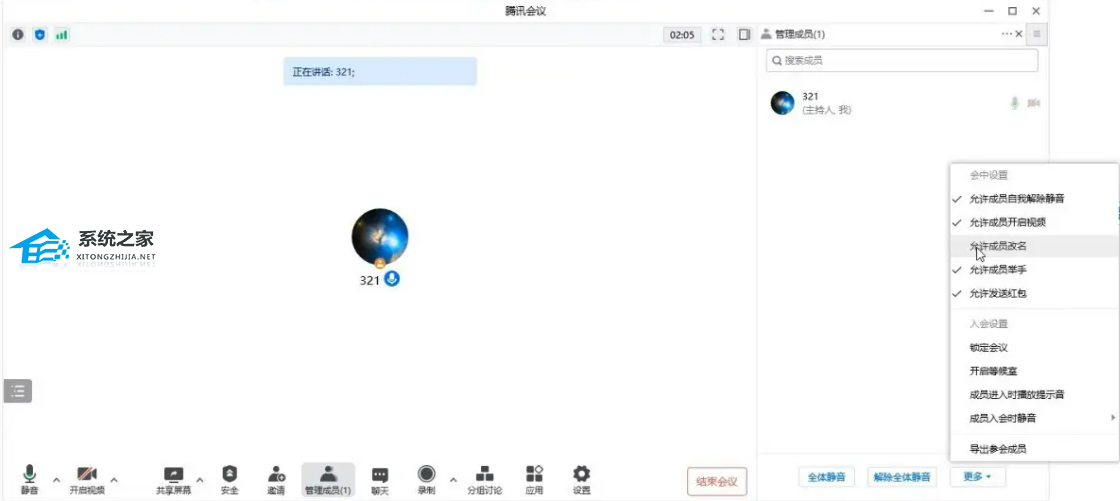 5、勾选允许成员改名选项即可,要注意该功能只有会议的创建者才能修改。