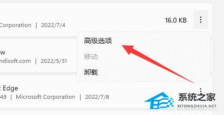4. 随后点击wsa右边“三个点”,打开“高级选项”。