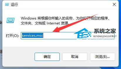 2. 在其中输入“services.msc”并回车打开服务。