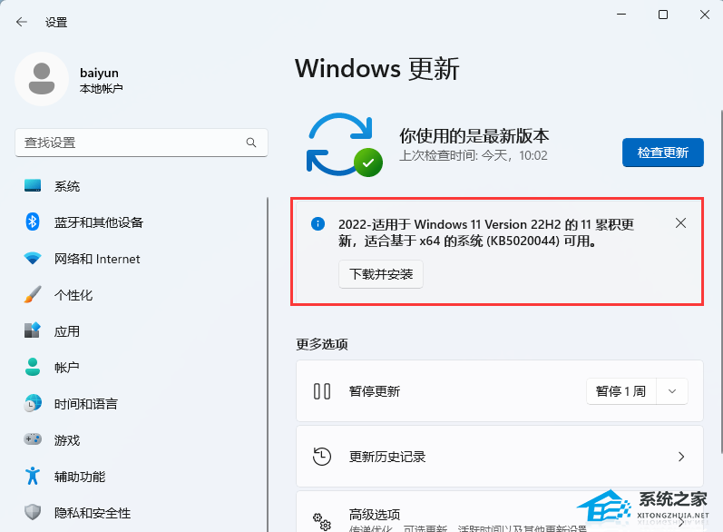 可以直接下载KB5020044更新补丁【点击下载】,或者进行以下操作: