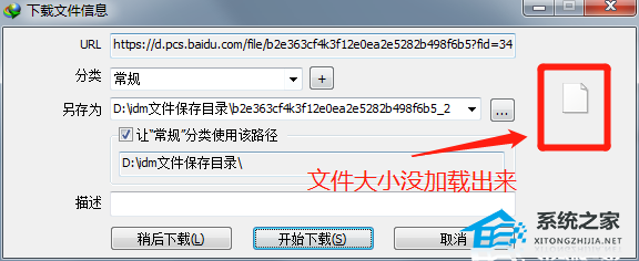 那怎么判断idm是否获取到下载地址?很简单,在idm的下载弹窗中,如果文件大小没有显示,就代表idm没有获取下载地址,如下图。