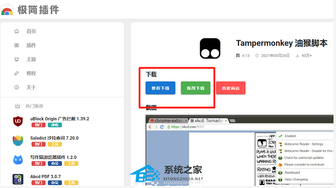 1、因为Chrome不能直接运行脚本,所以需要一个插件帮助浏览器运行脚本,安装方法很简单,登录“极简插件”官网,搜索“tampermonkey”或者“油猴”插件并安装即可。