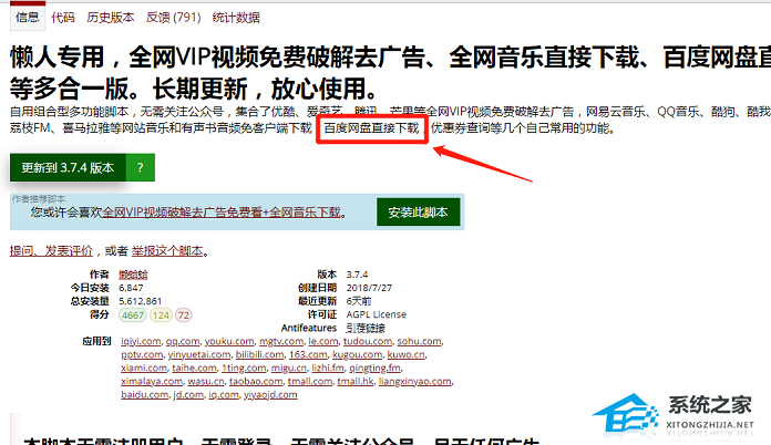 2、登录“greasyfork”脚本网站,搜索“百度云/网盘”等,找到能解析百度资源下载直链的脚本,最后安装脚本即可。
