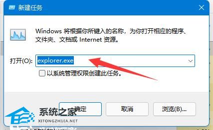 3、随后在其中输入“explorer.exe”并按下回车运行该程序。