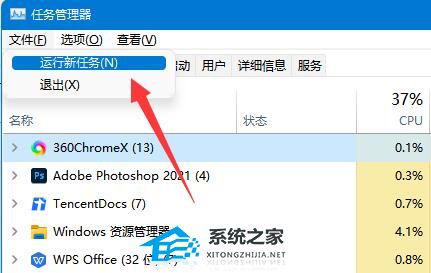 2、打开后,再按下键盘“alt+F”并按下“回车”打开“运行新任务”。