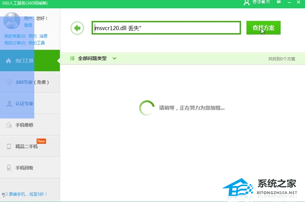 2、点击人工服务,搜索msvcr120.dll丢失。
