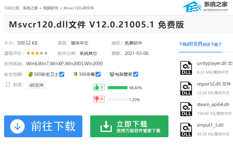 以上就是系统之家小编为你带来的关于“计算机丢失msvcr120.dll解决办法”的全部内容了,希望可以解决你的问题,感谢您的阅读,更多精彩内容请关注系统之家官网。