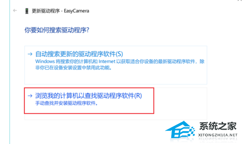 5、点击“浏览我的计算机以查找驱动程序软件”。