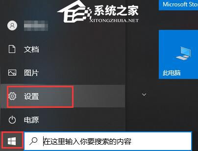 1、点击开始菜单——点击设置。