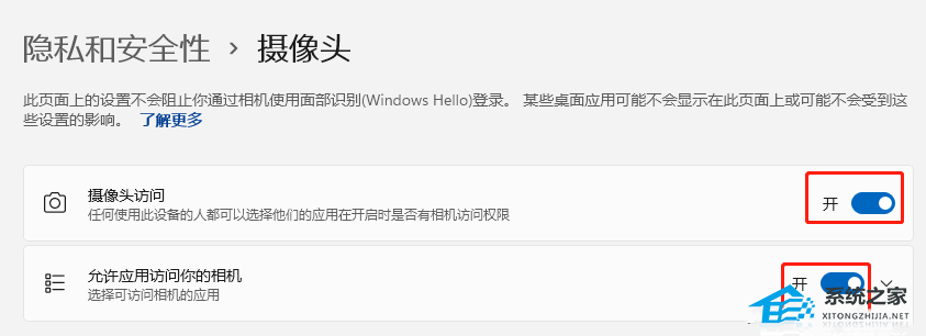 2、查看【摄像头访问】是否为已打开状态,如果是关闭更改为开。