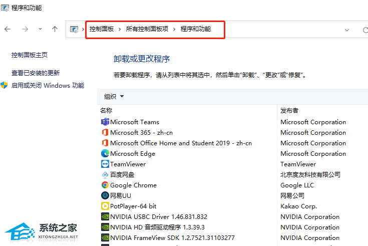 2、检查【程序和功能】下是否有【Camera】字样的设备驱动,如果有,全部卸载。(如果电脑中并没有相关Camera字样的设备驱动无需卸载)