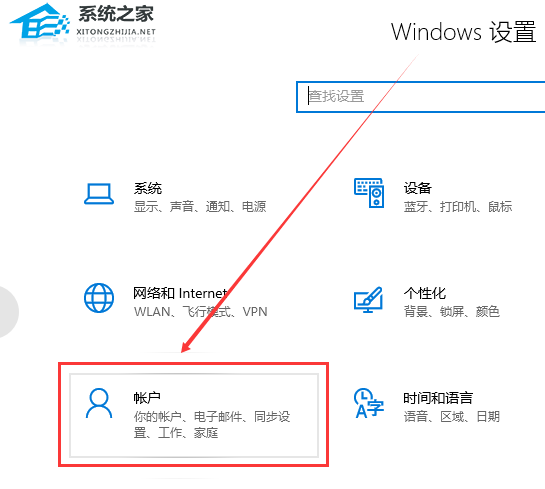 1、使用快捷键“win+i”打开设置界面,选择“账户”。