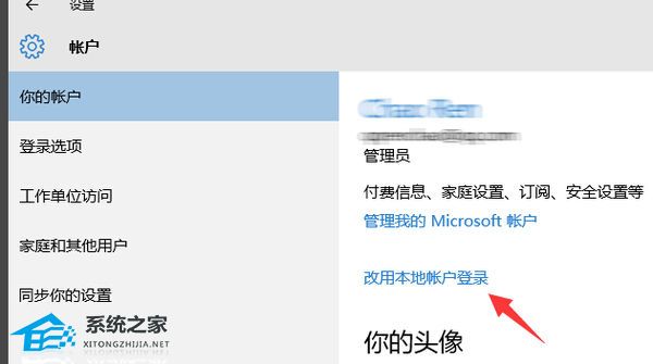 2、然后在你的账户右侧,选择“改用本地账户登录”。