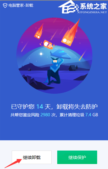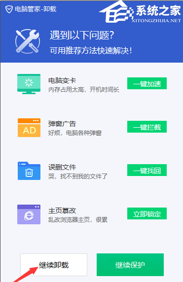 4、在弹窗的卸载界面中,我们点击【继续卸载】。