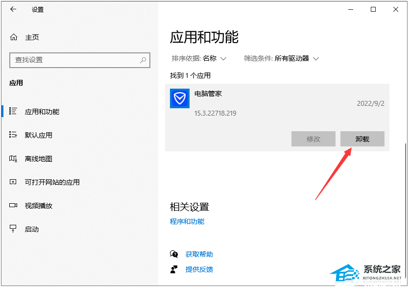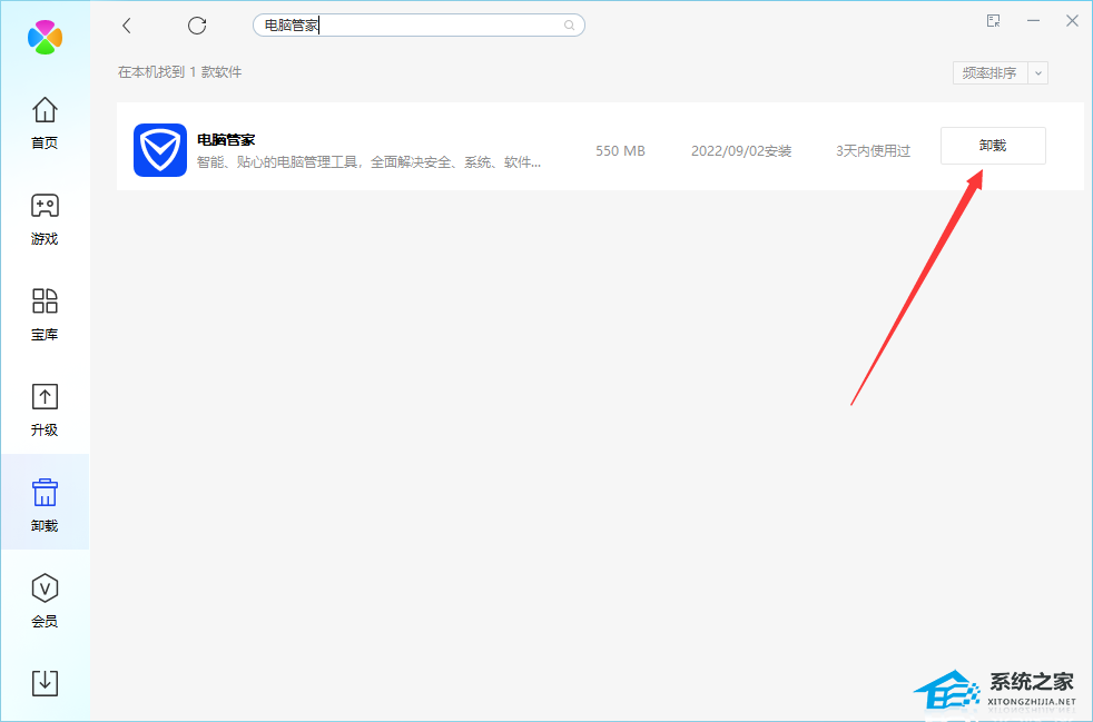 2、在软件管理中,我们再点击左侧的【卸载】,搜索找到【电脑管家】点击右侧的卸载按钮即可卸载软件了。