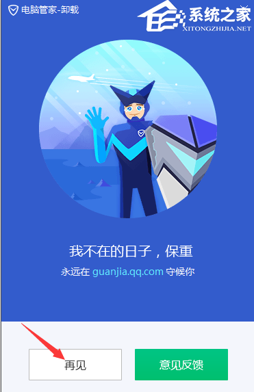 10、此时电脑管家已经卸载完成了,我们点击【再见】按钮。