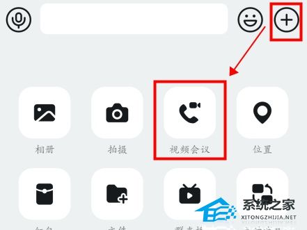2、也可以从群聊页面发起视频会议,点击群聊页面右下角「+」按钮,选择「视频会议」即可。