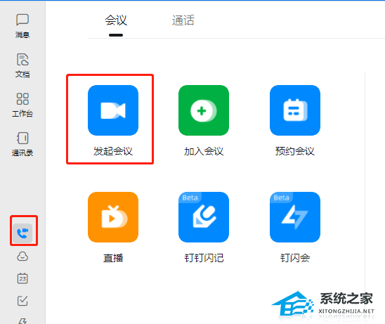 1、【手机端钉钉】-【消息】页面 - 右上角【电话图标】-【发起会议】-【视频会议】即可。