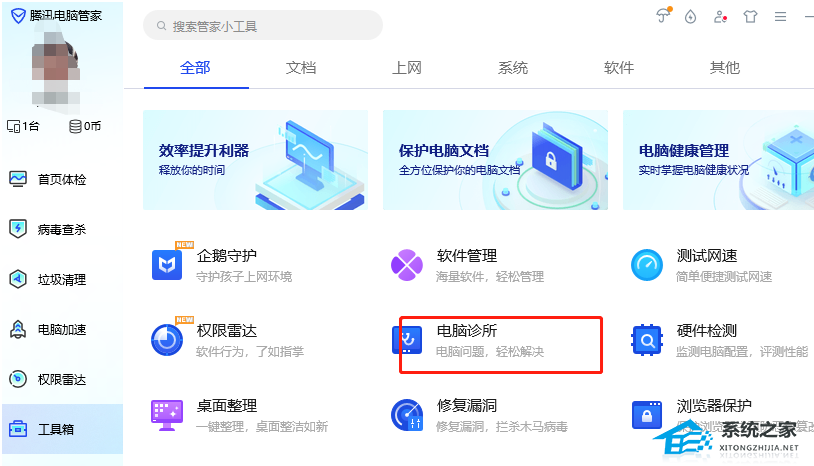 1、用户在电脑桌面上打开腾讯电脑管家,并进入到软件首页。