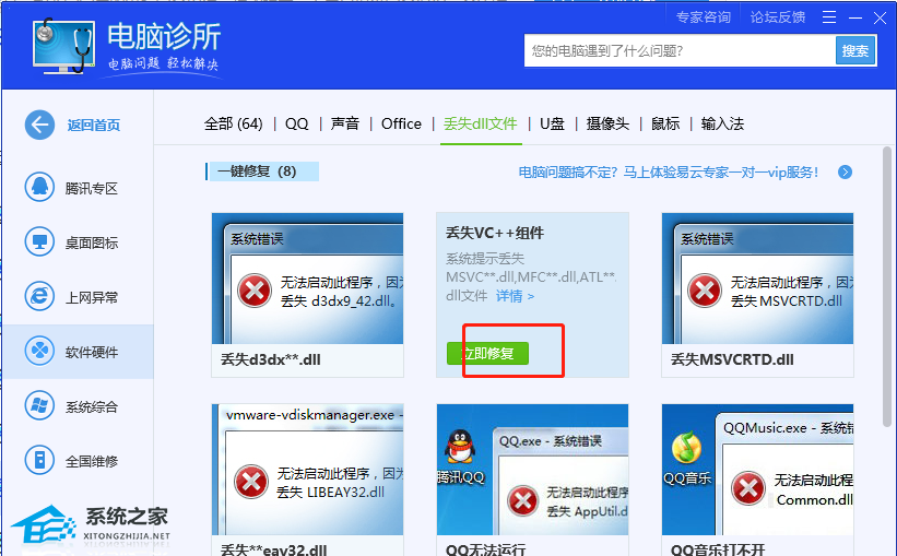 6、用户也可以找到自己需要修复的dll文件来单独修复,点击文件就会弹出立即修复按钮,将其点击即可解决问题。