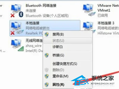 1、如果网线没有问题,那么右键存在问题的网络,打开“属性”