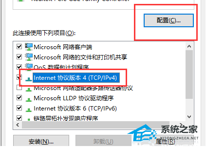 2、打开后,选中“internet协议版本4”点击“配置”