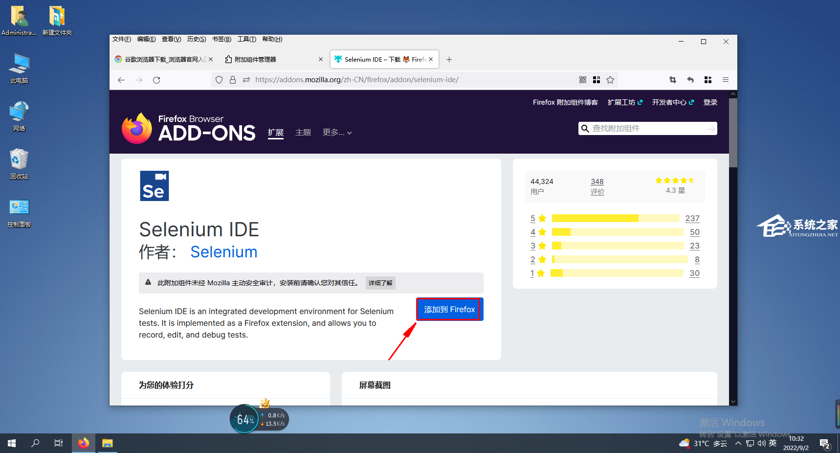 4、点击Selenium IDE,进入后,单击“添加到Firefox”。
