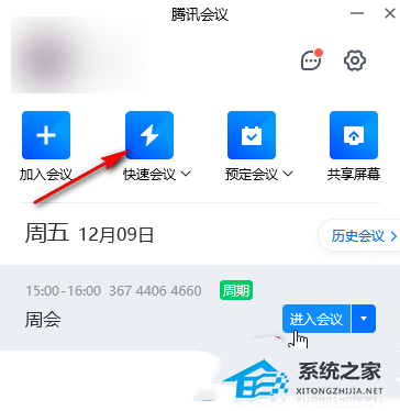 2、我们可以将鼠标悬停到预定的会议上后,点击“进入会议”按钮,或者点击上方的“快速会议”按钮快速创建一个会议;