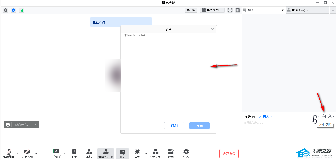 5、点击旁边的“公告”按钮可以编辑公告内容后进行发布;