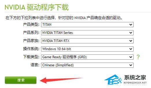 3、网页会自动匹配你的硬件设备,点击“搜索”。