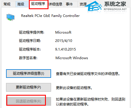 6、之后选择“驱动程序”,再点击“回滚驱动程序”,这样就可以退回上个正常的版本了。