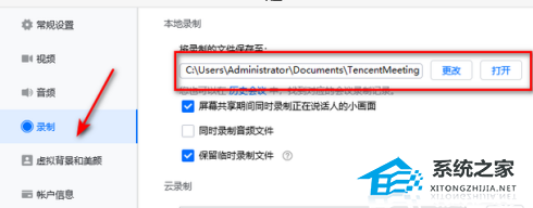 3、在新界面中,点击左侧的“常规设置”,找到其中的“将录制的文件保存至”,点击即可查看默认的保存路径。