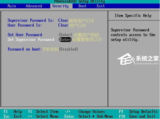 3、security,安全设置选项,基本上是设置用户密码,硬盘密码的设置,大家可参考下图。