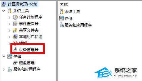 2、然后可以在管理界面看到“设备管理器”点击进入。
