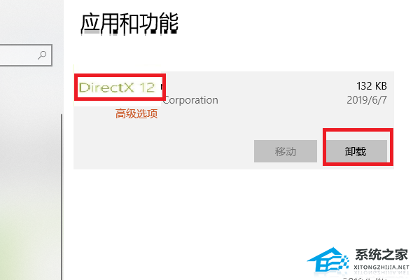 4、在“应用和功能”界面,下拉找到“DirectX12”,点击“卸载”选项。