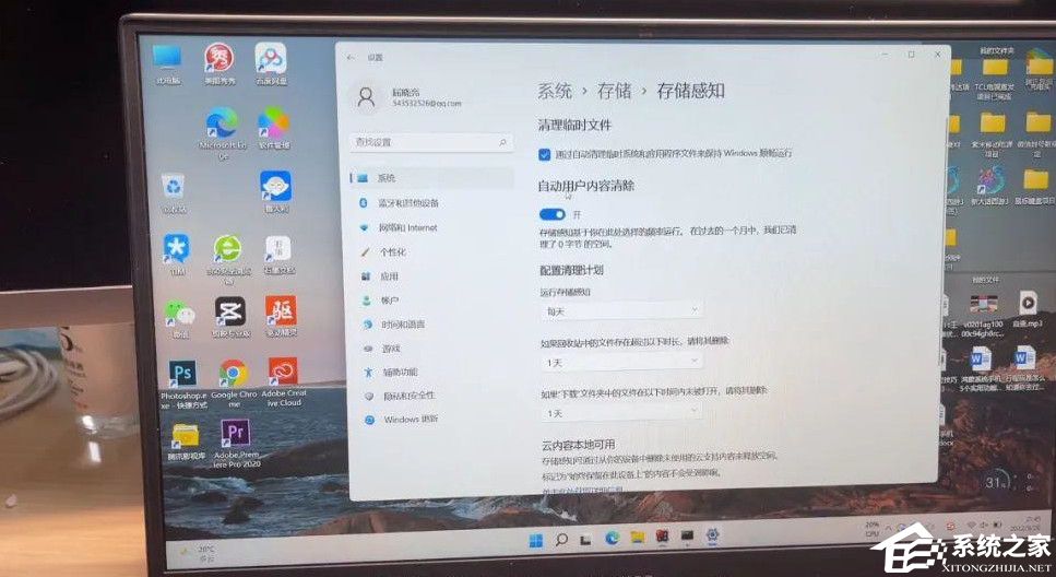 我们可以打开存储感知,因为它可能是处于关闭的一个状态,我们可以把它开启完成以后点击右侧这个小三角,在这里的话有一个非常实用的功能,它就可以清理自动的清理一些临时文件,我们点击勾选,勾选完成以后,它会包括一个自动用户内容的清除,我们把它打开,比如说每天清除一次,建议大家可以选择每天清除一次,这样的话能保证我们电脑流畅运行。