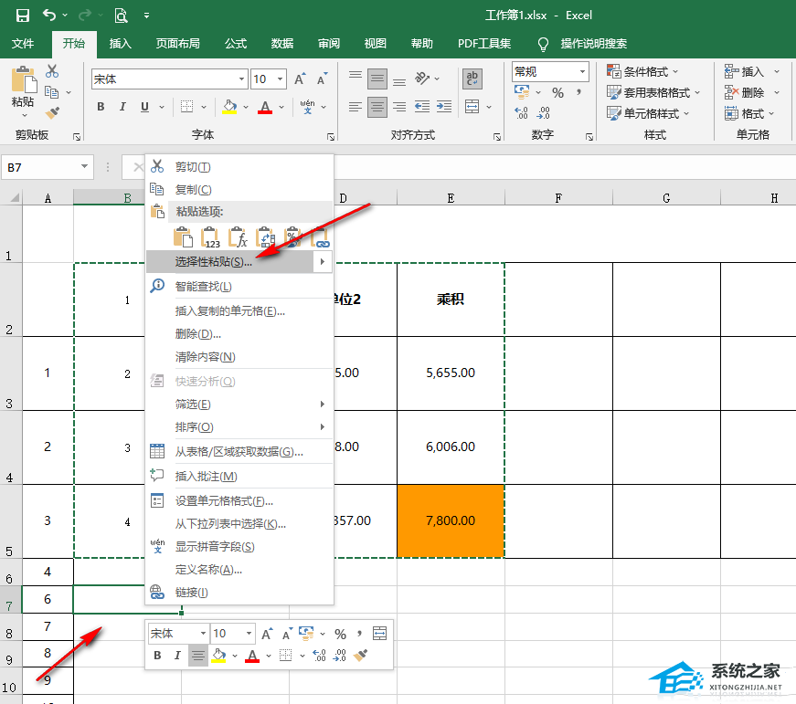 5、我们也可以在复制之后点击一个空白单元格,然后右键单击选择“选择性粘贴”选项。
